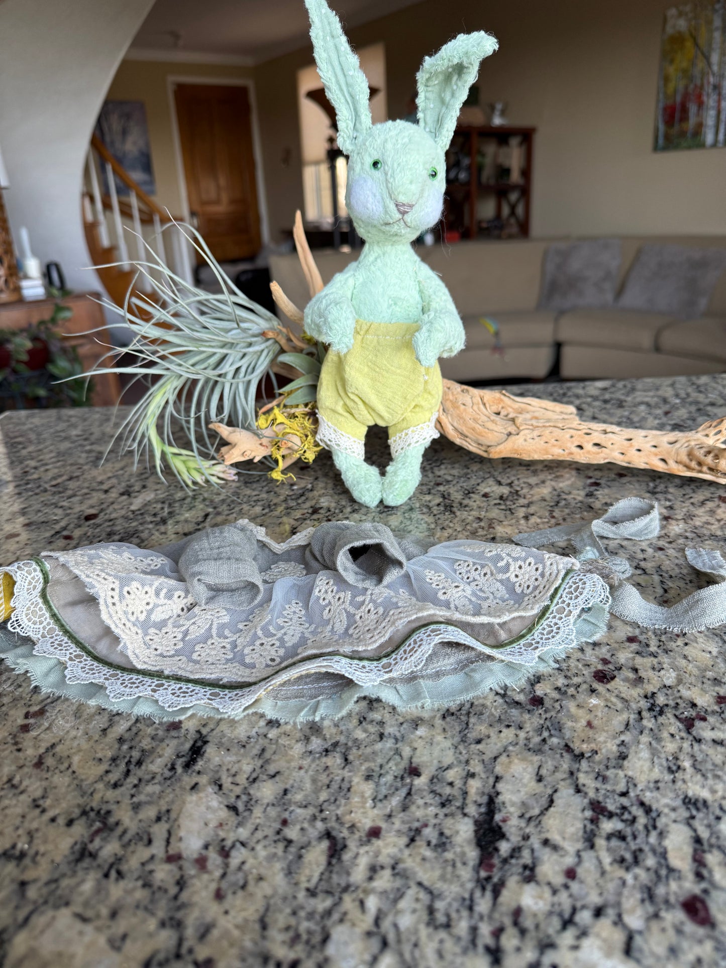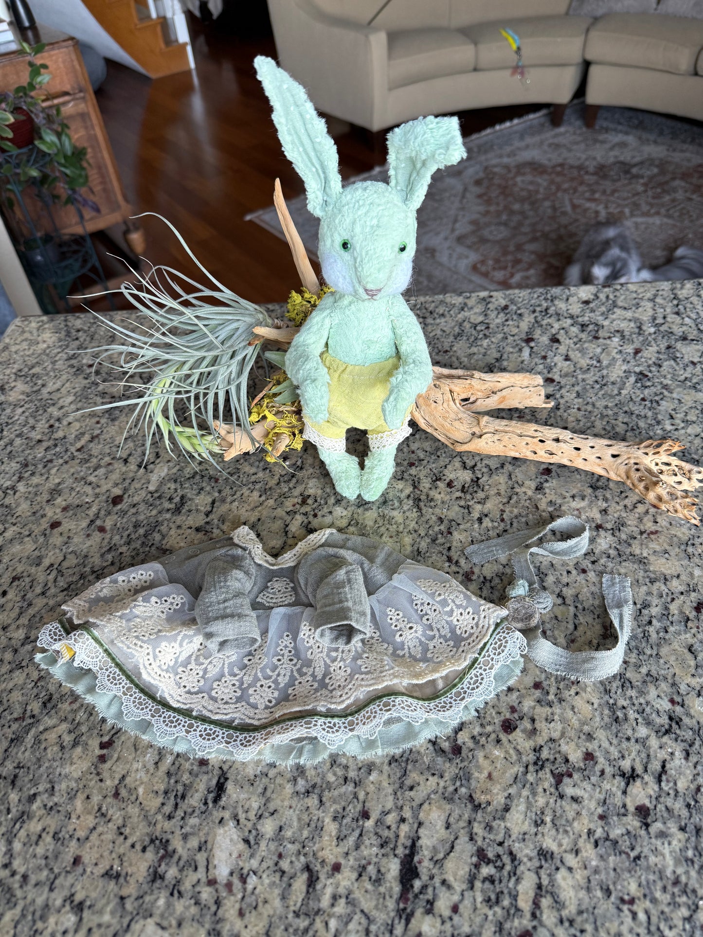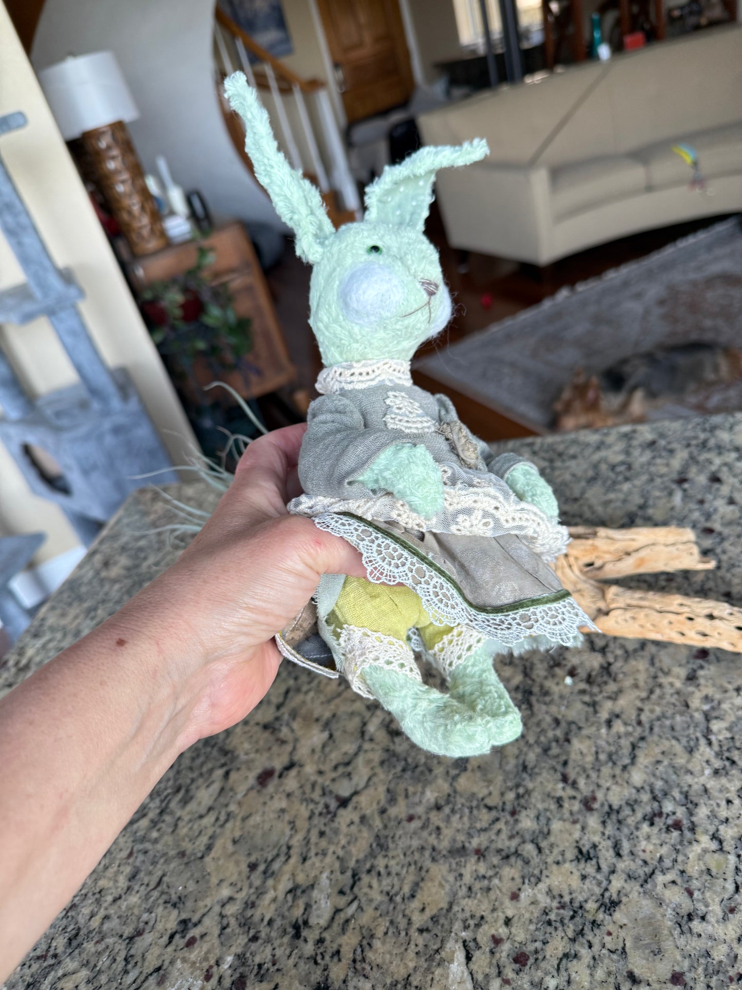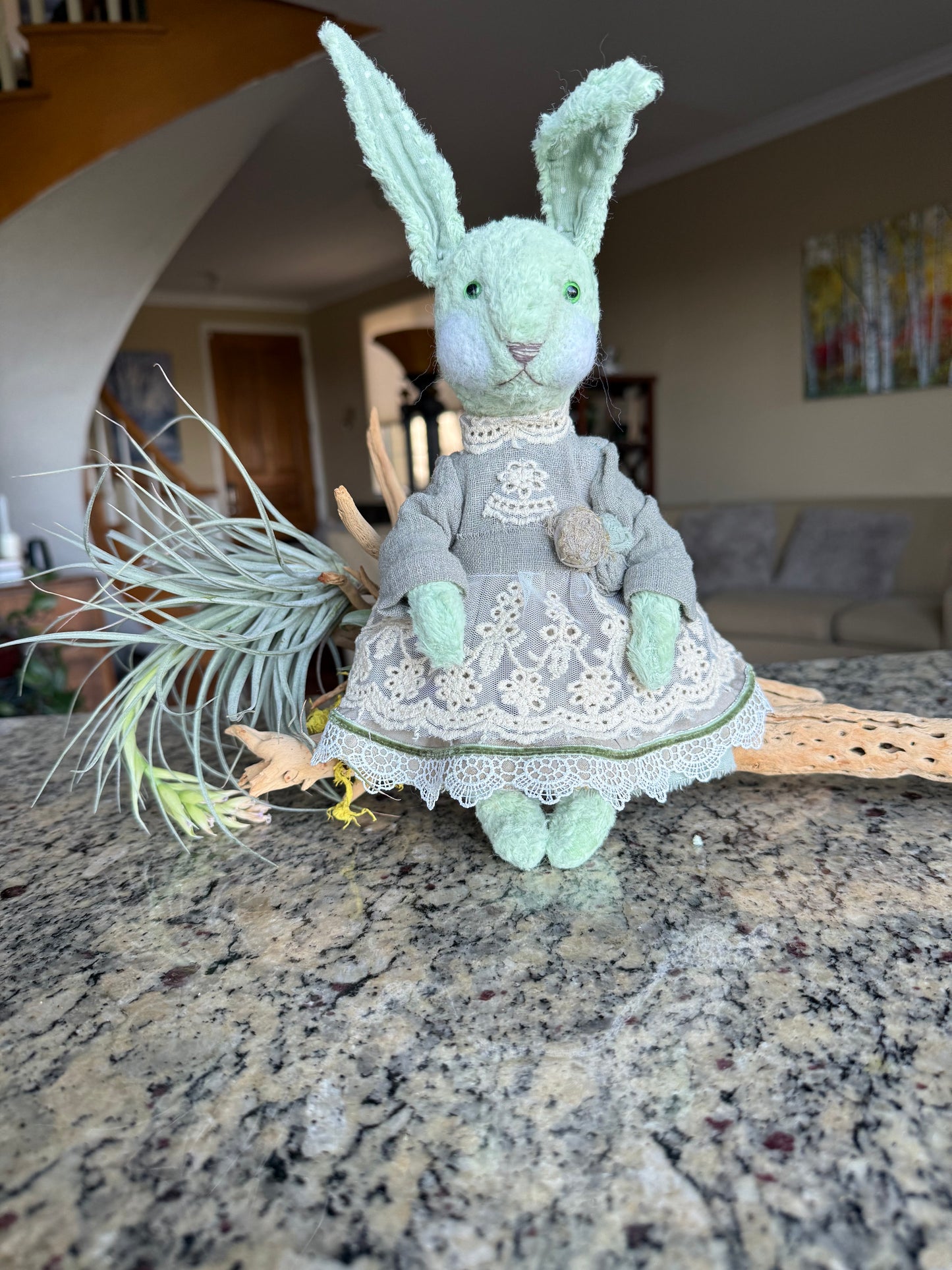 Handcrafted OOAK Easter Bunny Plush - Vintage Charm with Unique Glass Eyes, 12.5” Tall