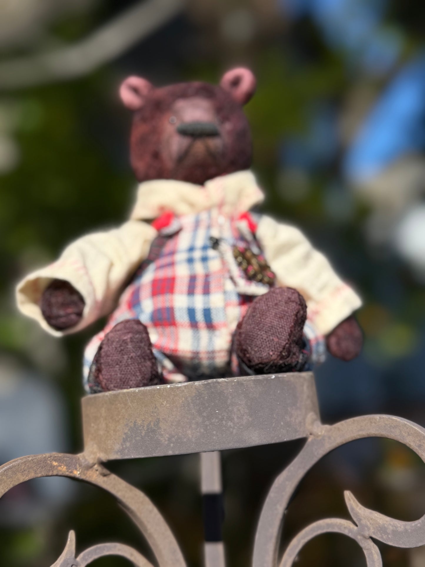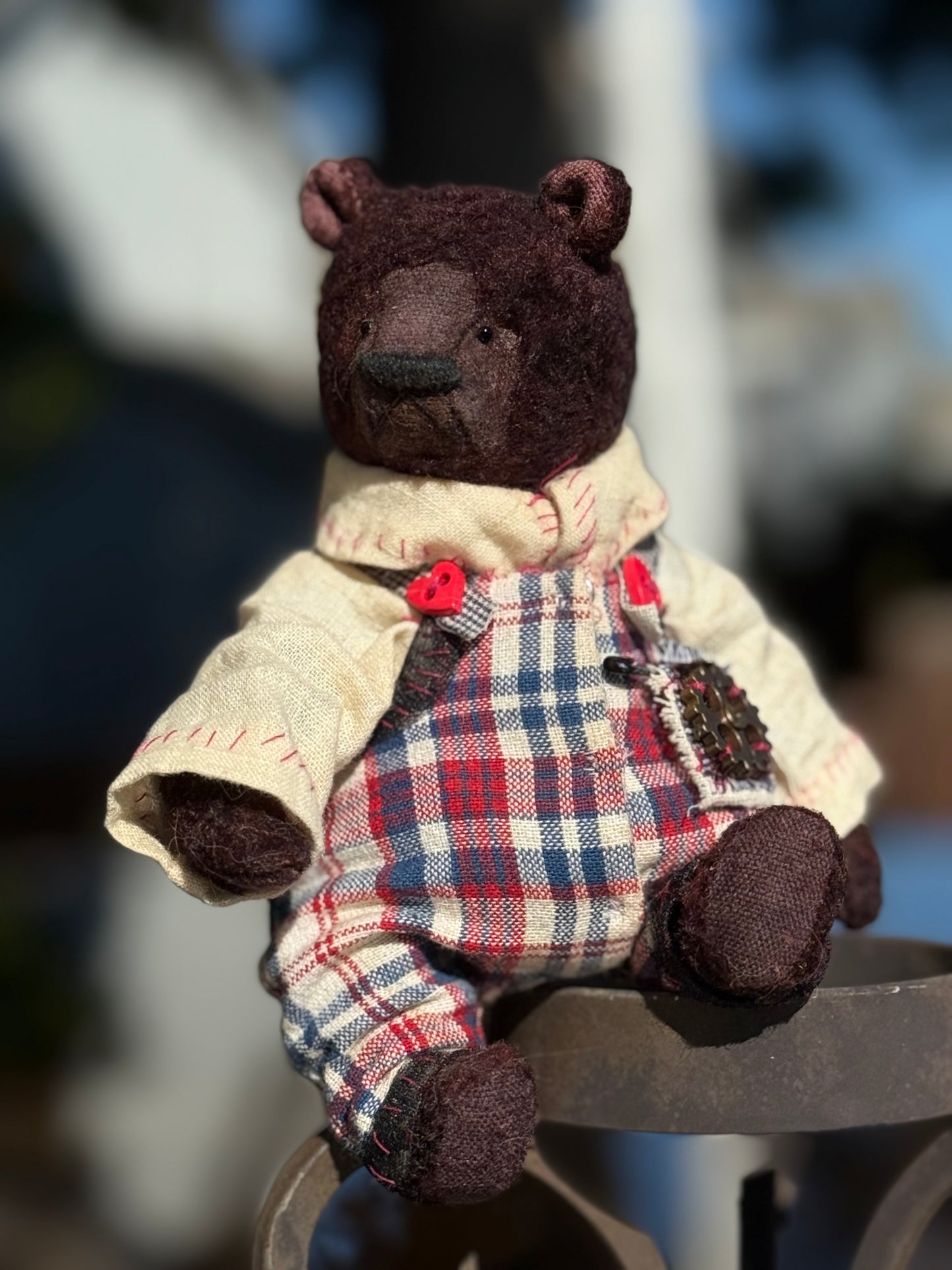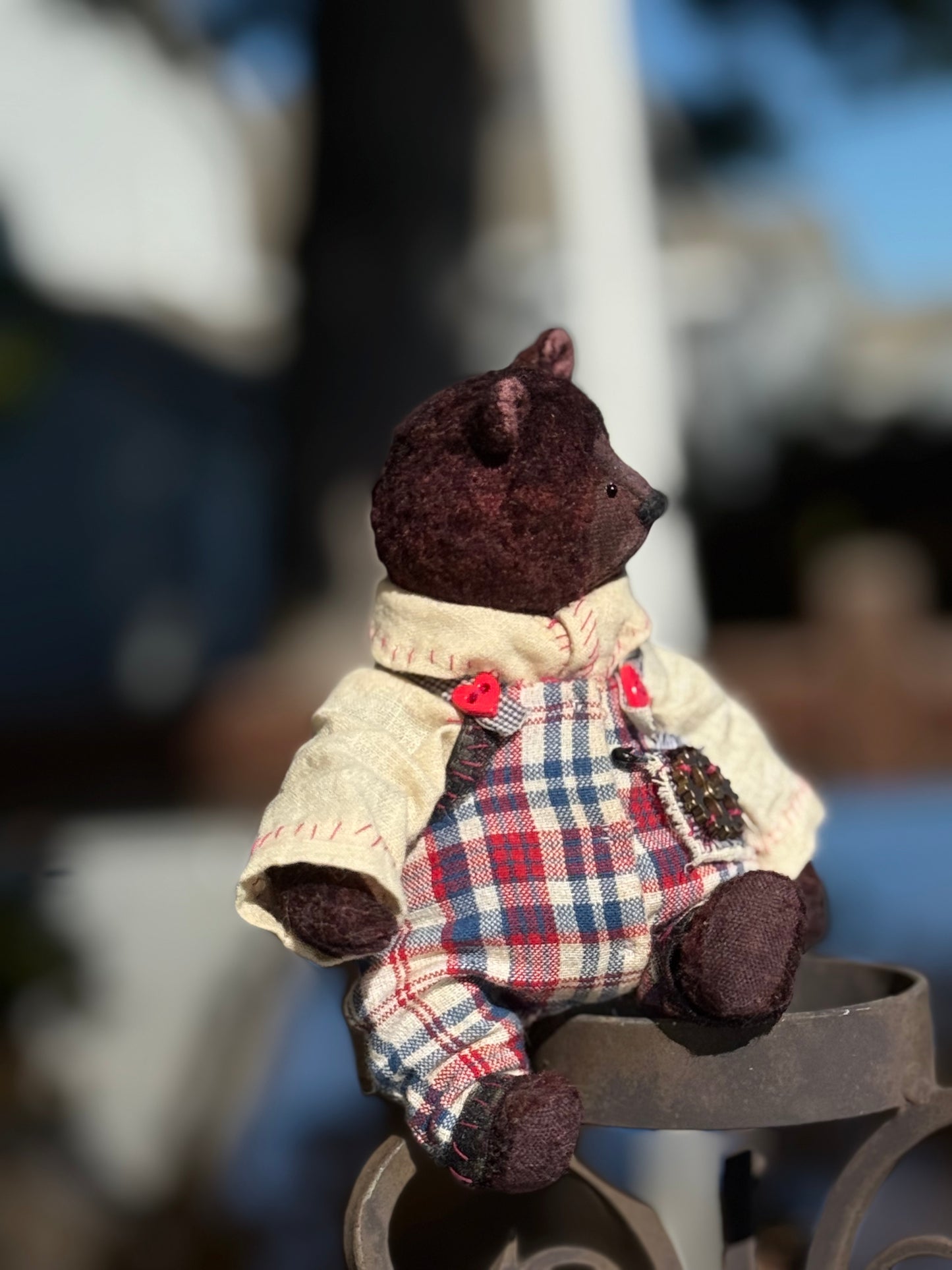 Handmade Vintage-Style Teddy Bear with Linen Outfit