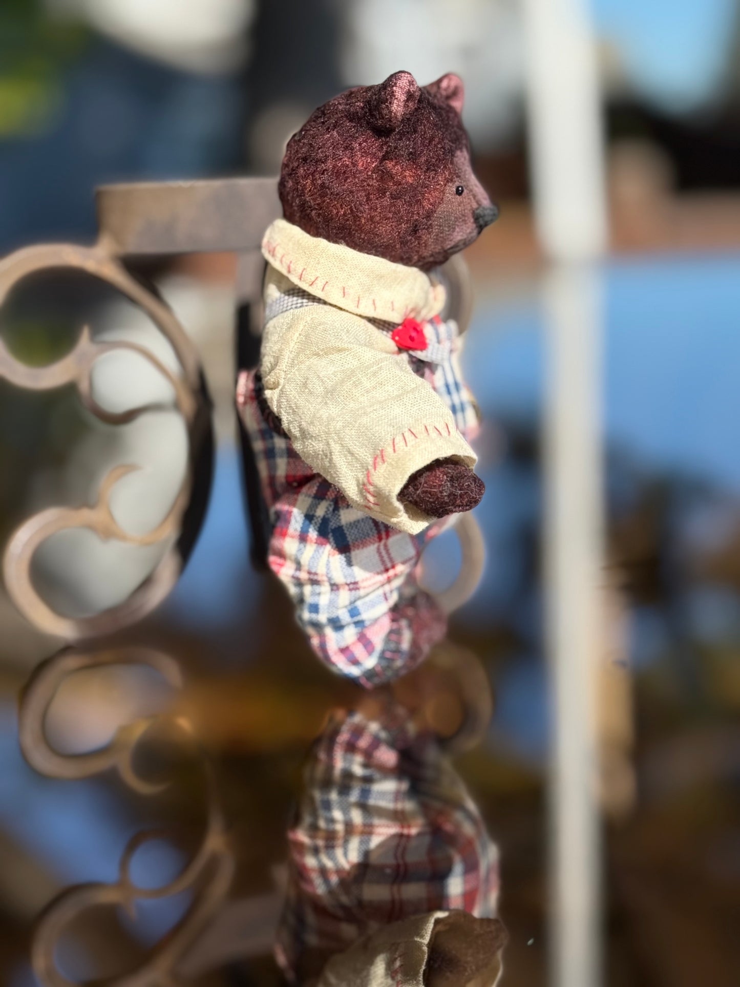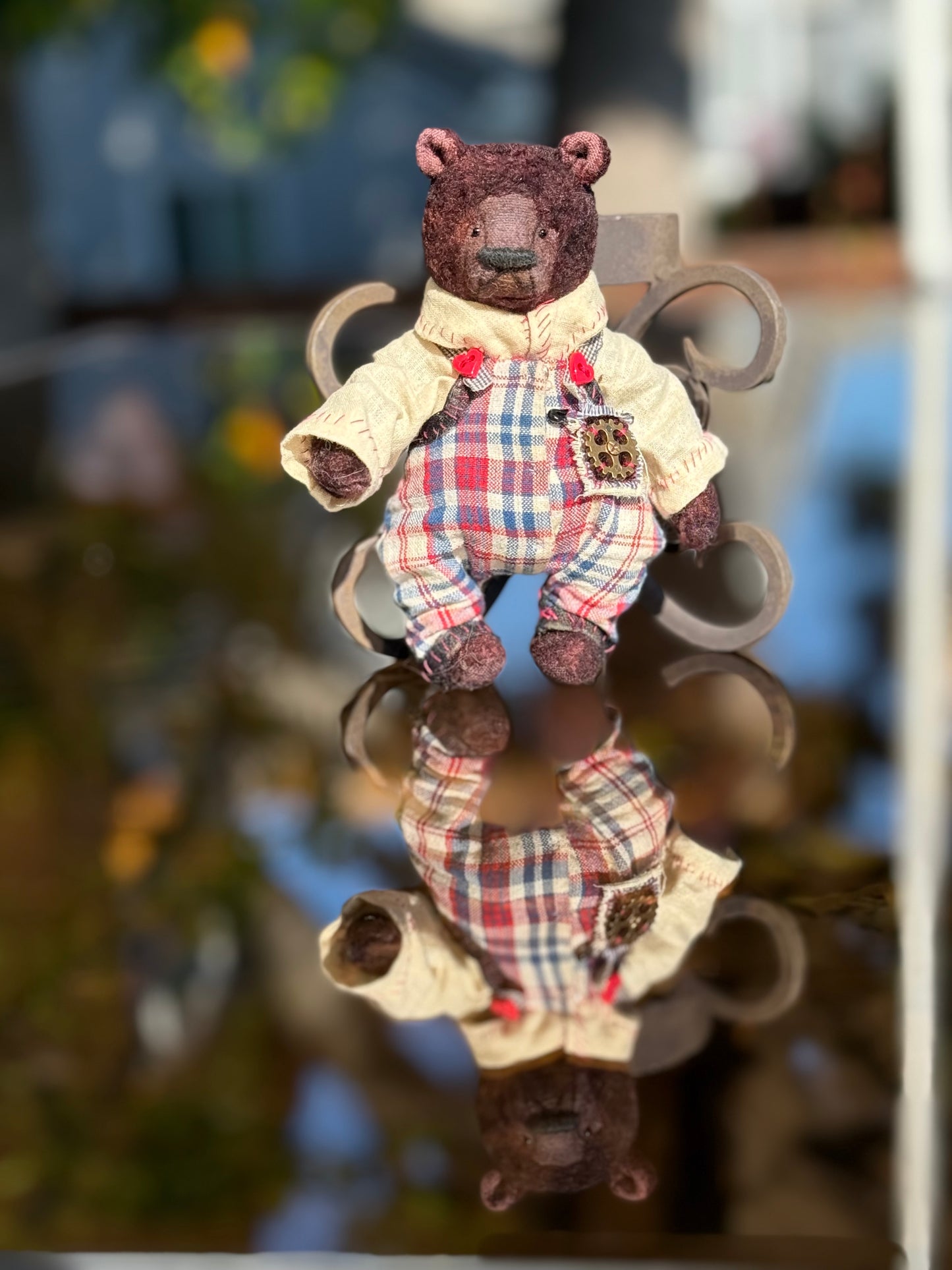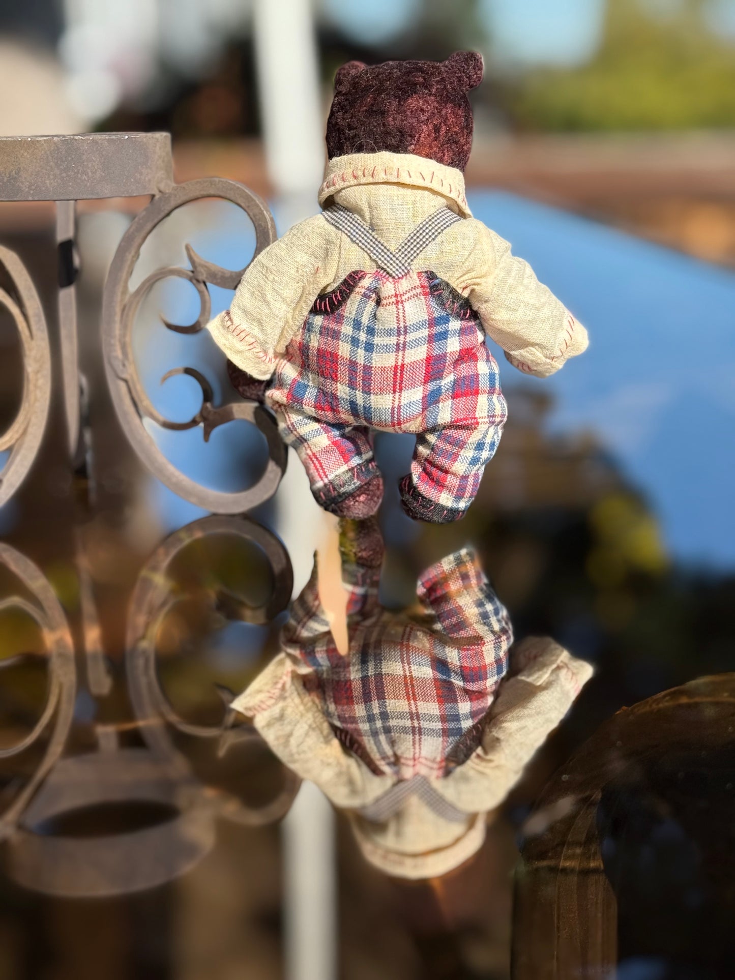 Handmade Vintage-Style Teddy Bear with Linen Outfit
